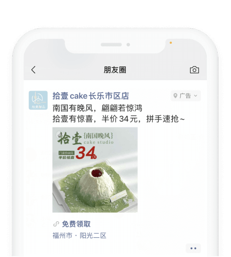 - 拾壹cake长乐市区店是一家主营线上配送的烘焙甜品门店,广告投放诉求为通过微信公域流量为小程序引流。