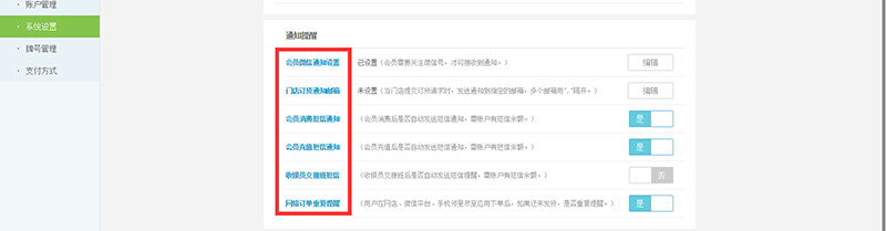 通知提醒:可进行会员消费微信短信通知设置、门店订货通知、交接班通知等实时提醒相关设置