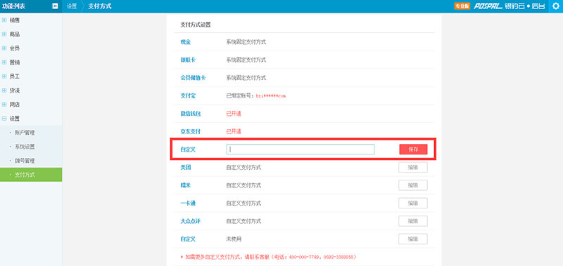 通过设置“自定义支付”,系统在收银过程中会自动记录和统计不同的支付方式的收入。