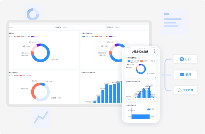 供应链管理 打造多端协同的供应链一体化服务,完成自动分仓、智能补货、移动盘点、进销存实时报表,提高仓库的配货效率;配合数据BI可视化呈现数据,辅助经营管理决策,为老板提供更高效的数据分析能力,支持将数据以图表、仪表盘等形式呈现,使数据更直观,更易于理解,提高更有价值的分析结果。